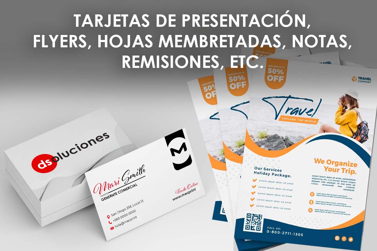 Diseñamos tarjetas, flyers publicitarios, hojas membretadas, señalizaciones, recetarios, notas y cualquier papelería impresa.
